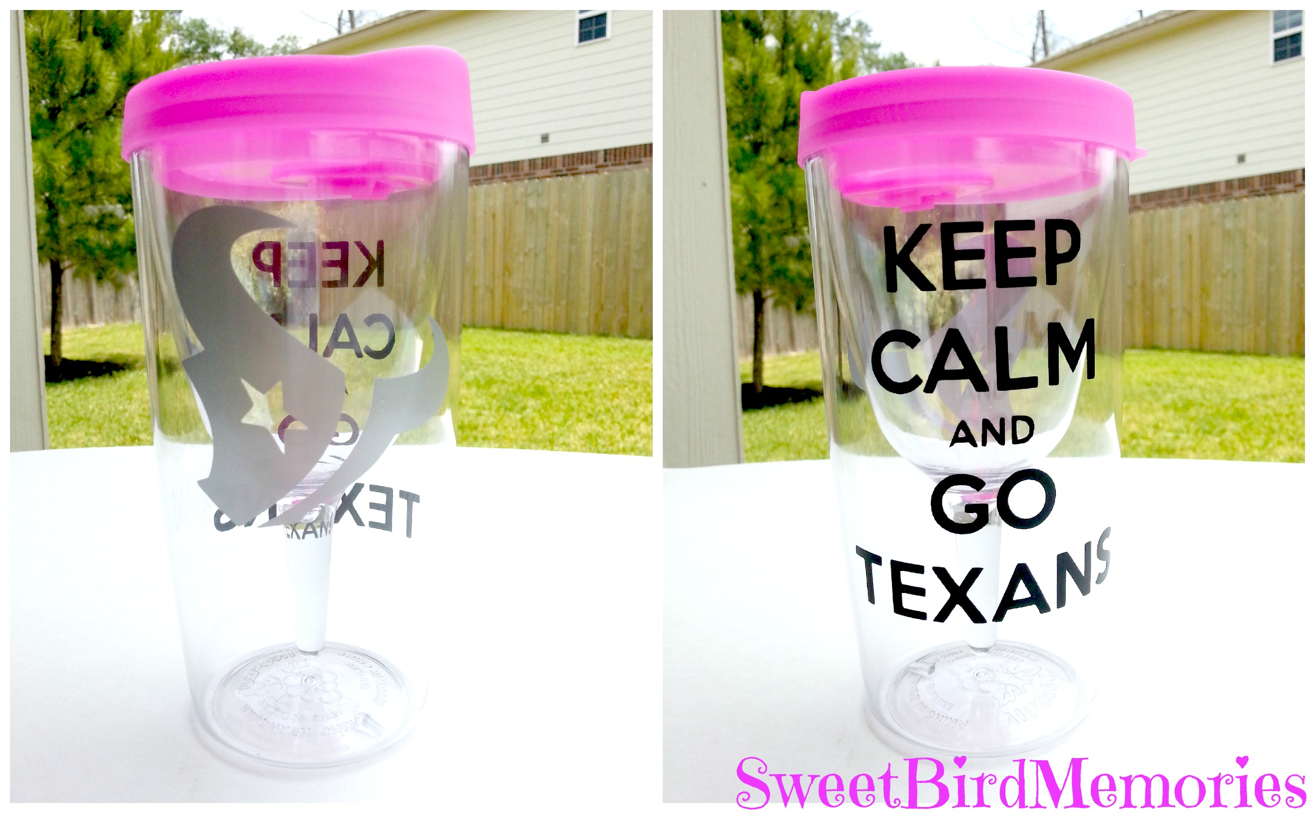 Texan's Pink Keep Calm Theme Vino2go Cup
